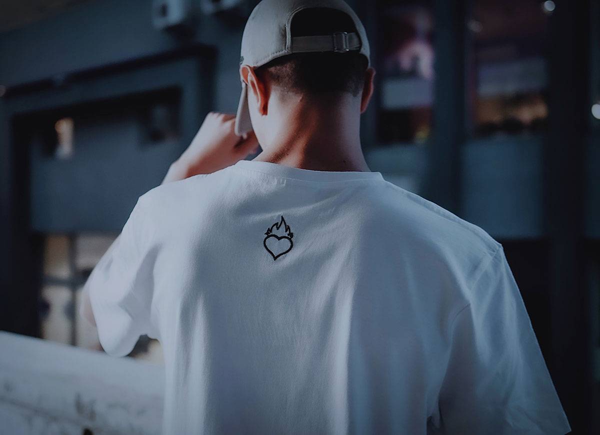 - TYŁ: SERCE basic – haft najwyższej jakości przygotowany na podstawie autorskiej grafiki; na karku